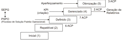 ![]() SOX Lei criada em Congresso Americano, que garante que empresas criem controles para não criarem fraudes contábeis, usando um modelo de referência chamado COSO (financeiro) e COBIT (tecnologia). Representação gráfica do CMM ![]()